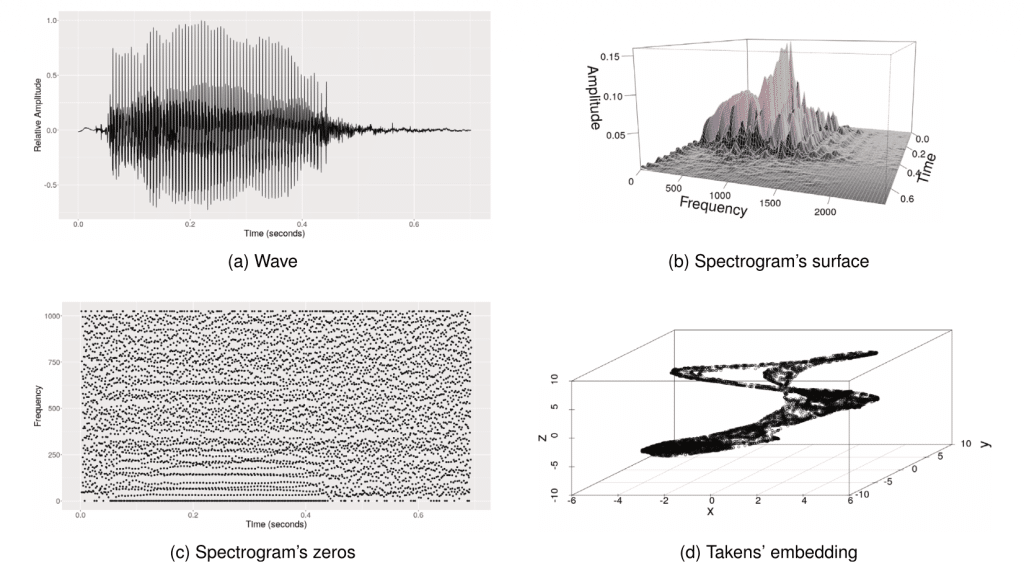 How should a vocal signal be represented for topologically-augmented classification? Extracting robust topological characteristics from speech signals has recently emerged as a promising approach for improving classification performance. In this study, we compare the topological information extracted from several signal representations, including Takens’ embeddings, spectrograms, and spectrogram zeros. Using a dataset of 11,200 recorded vowel utterances (publicly available), we conduct an empirical analysis demonstrating that these topological features provide additional discriminative information for both speaker and vowel classification. Moreover, features derived from different signal representations appear to be complementary. Interestingly, our results suggest that low-persistence topological features, often dismissed as “topological noise”, encode important information about speech.