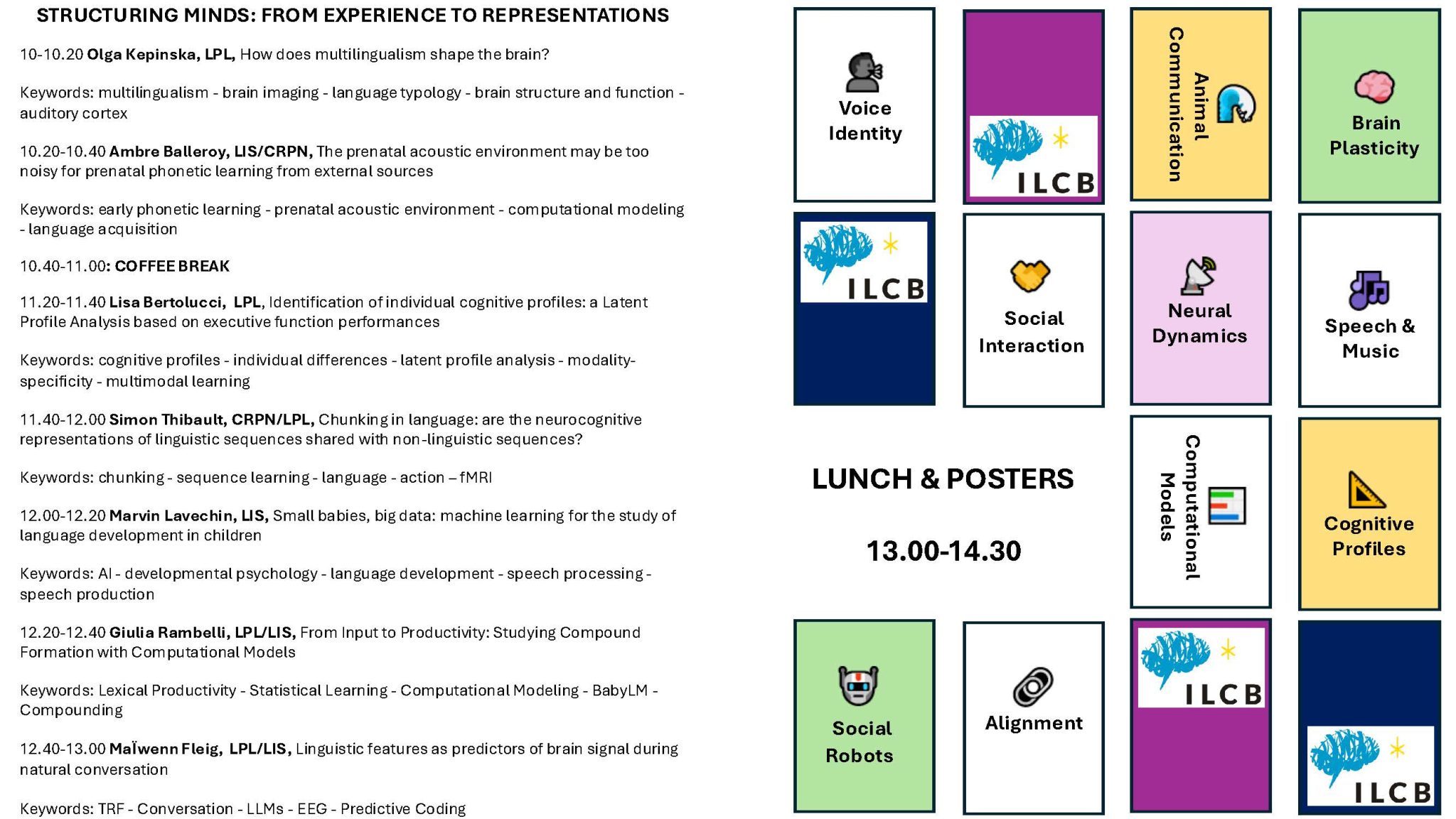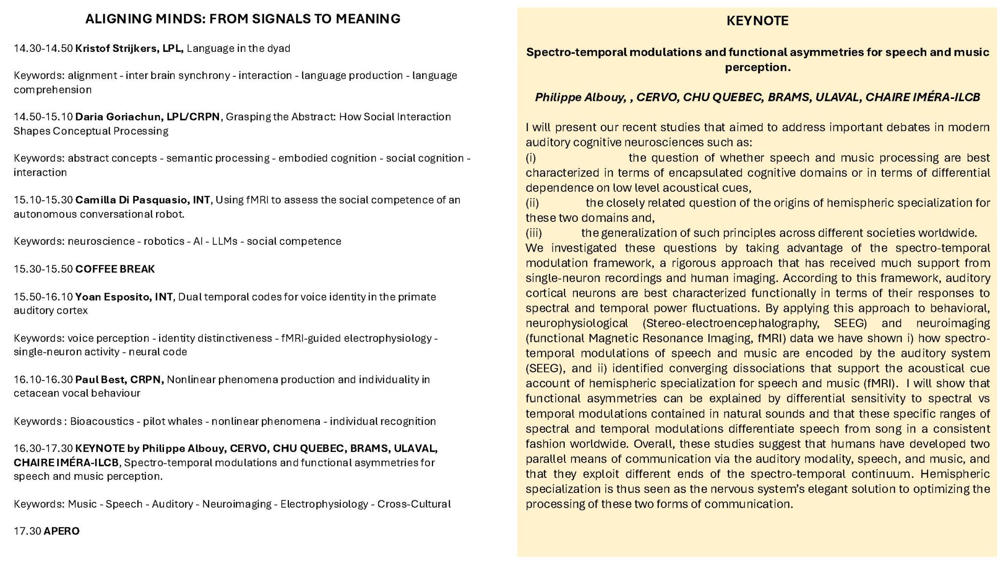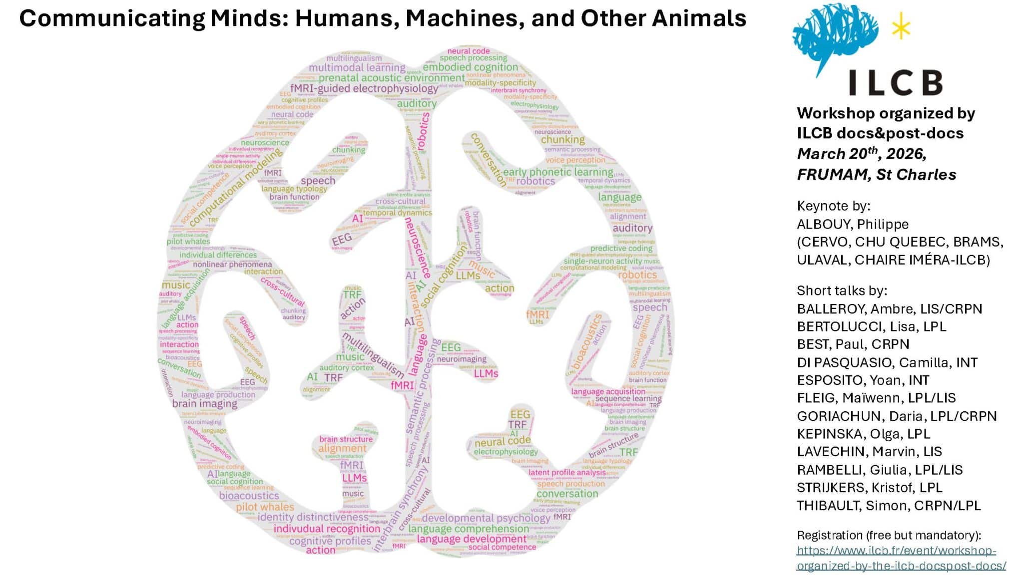 The program will include short talks by PhD students, postdocs, and researchers, a keynote lecture by our ILCB Iméra fellow Philippe Albouy, and a poster session. New this year: all registered participants may present a poster (upon notification, for organizational purposes).
